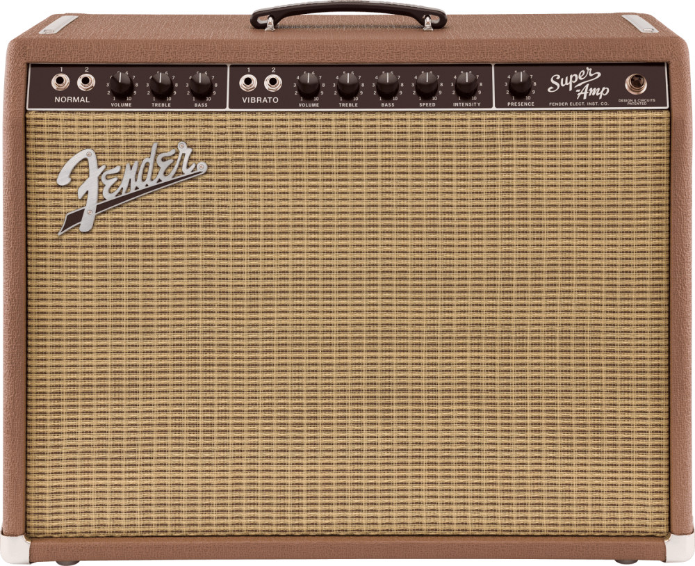 The first of the Fender® brown panel models, the '62 Super™ has an incredibly warm and woody sound when played clean blooming into sweet overdrive when cranked. Along with its special phase-shifting harmonic tremolo, this amp dishes out phenomenal tone at any volume. With dual 6L6 power tubes pushing 40 watts through two 10" Celestion® Custom Design speakers, the '62 Super™ is ideal for recording and gigging.