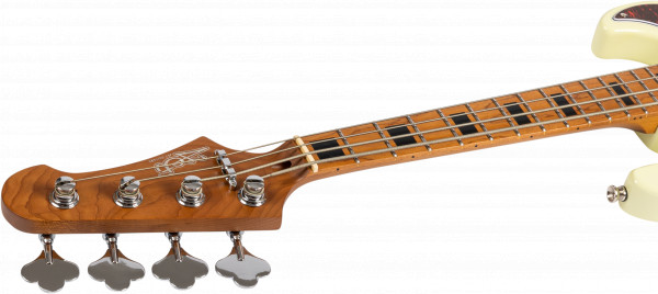 The Jet Guitars JB-300 Travel Bass is a compact but high-quality travel-sized electric bass with a full tone and easy playability! This bass, with a scale length of only 23", has a high-quality heat-treated Canadian maple neck, which can withstand even large humidity fluctuations and is therefore a good choice for a travel-sized instrument. The body made of heat-treated poplar has two JB-style pickups, whose strong sound will give you the right tones for all kinds of music. The only 38mm wide bone nut combined with the short scale ensures easy playability.