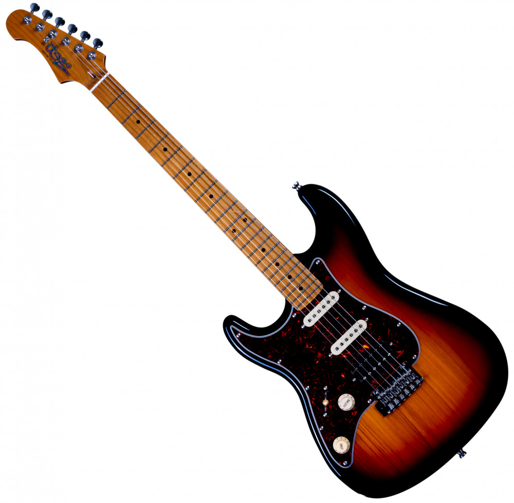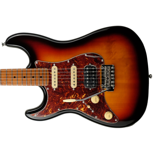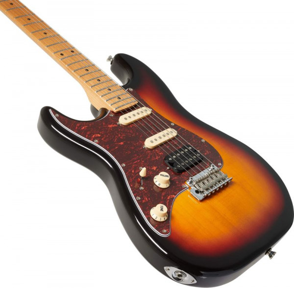 Jet JS-400 is fitted with three ceramic magnet pickups in HSS configuration, resulting a hugely versatile range of tones. The bone nut and Roasted Maple fretboard are usually unseen at this price, as are the upgraded 2-point trem system and sculpted plate-less neck heel.